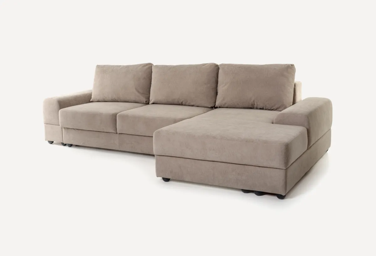 Оттоманка (левая / правая)Это такой квадратный модуль без спинки. Тоже есть подъемный механизм и короб для белья. Ставится обычно с краю, чтобы делать диван Г-образным или П-образным. На ней удобно лежать или сидеть, подложив подушку. Кстати, ящик внутри — полноценный.