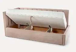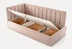 - Конструкция. Одним из важных моментов является наличие или отсутствие каких-либо дополнительных полочек, ящиков хранения, а также некоторых функций, например подъемный механизм, откидывание изголовья и др.